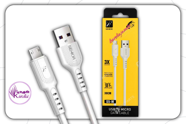 کابل ۳۰ سانتی متری مقاوم در برابر خمیدگی و پارگی مناسب برای انتقال اطلاعات وشارژ سریع دستگاه های سازگار با شدت جریان عبوری ۸ آمپر کانکتور های ساخته شده از جنس فلز مقاوم در برابر فشار و ضربه از نوع میکرو USB است.
