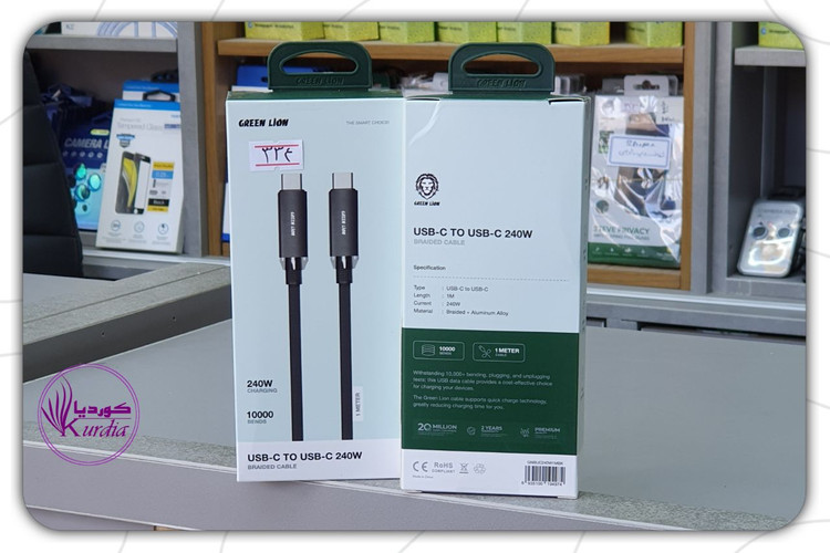 کابل دو سر تایپ سی 240 وات گرین لاین طول 1 متر: شارژ سریع و انتقال داده با کیفیت بالا
