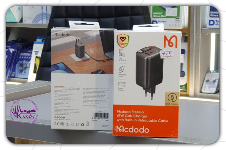شارژر دیواری 3 پورت 67 وات مک دودو مدل CH-4100 Gan با کابل تایپ سی جمع شونده