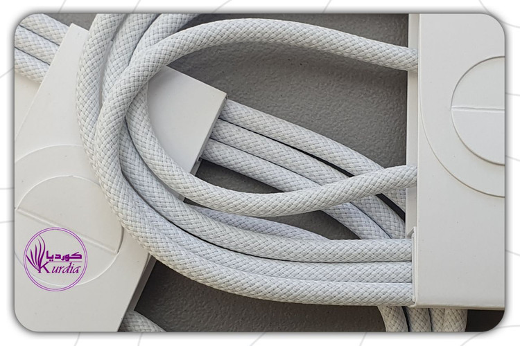 کابل شارژ دو سر تایپ سی ایفون 16 در ظاهری جدید و از جنس رویه کنفی داخل جعبه گوشی ایفون 16 ، 16پرو و ایفون 16 پرومکس قرار گرفت.