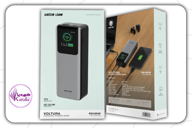 پاور بانک PD100W 20000 میلی آمپر ساعتی ولتورا گرین لاین دارای طراحی جمع و جور و قدرتمند است و قدرت بالا و شارژ سریع را ارائه می دهد.