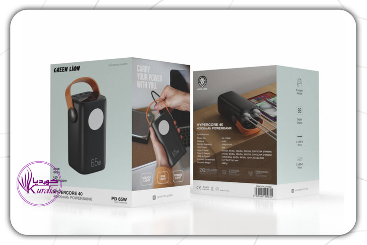 پاوربانک Green Lion Hyper Core 40 با ظرفیت عظیم ۴۰۰۰۰ میلیآمپر ساعت، همراهی مطمئن برای سفرها، کمپینگ، کارهای روزمره و حتی شرایط اضطراری است. این پاوربانک نهتنها گوشی و تبلت، بلکه لپتاپها و دستگاههای پرمصرف شما را هم با توان خروجی ۶۵ وات PD شارژ میکند.