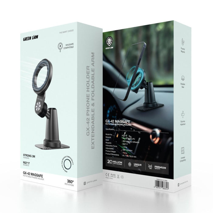 ۳ ـ بازوی قابل افزایش و تاشو، صرفهجویی در فضا را تضمین میکند و میتوان آن را برای موقعیت ایدهآل تنظیم کرد. این بسته شامل پایه نگهدارنده چرخان Green Lion GX-42 سازگار با MagSafe برای خودرو،