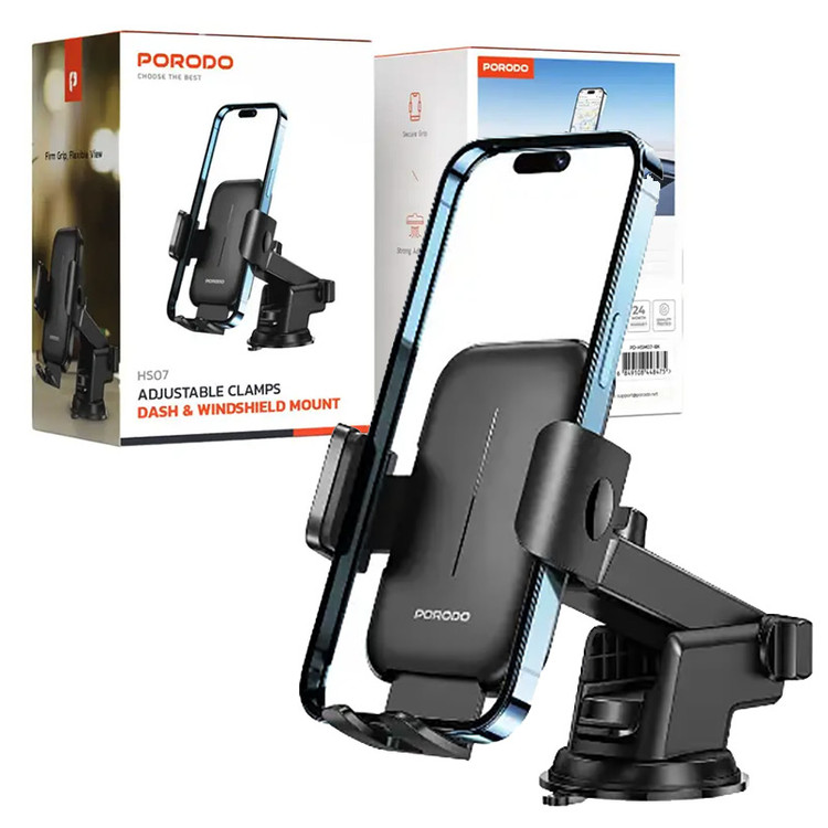 پایه نگهدارنده موبایل پرودو (Porodo Adjustable Clamps Dash & Windshield Mount) راهحلی ایدهآل برای استفاده ایمن و بدوندست از گوشی هوشمند در داخل خودرو است.